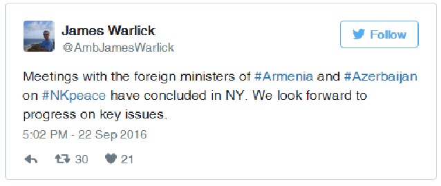 “New York’ta Ermenistan ile Azerbaycan Dışişleri Bakanlları ile Karabağ konulu görüşmeleri sona erdi. Biz genel konularla ilgili ilerleme bekliyoruz.”