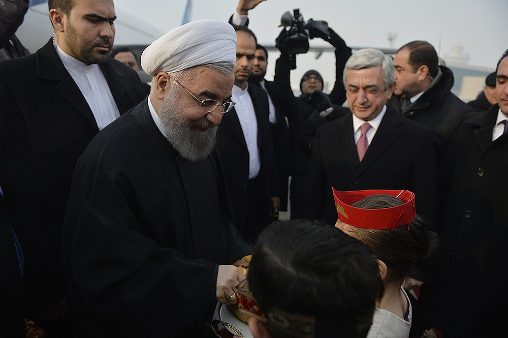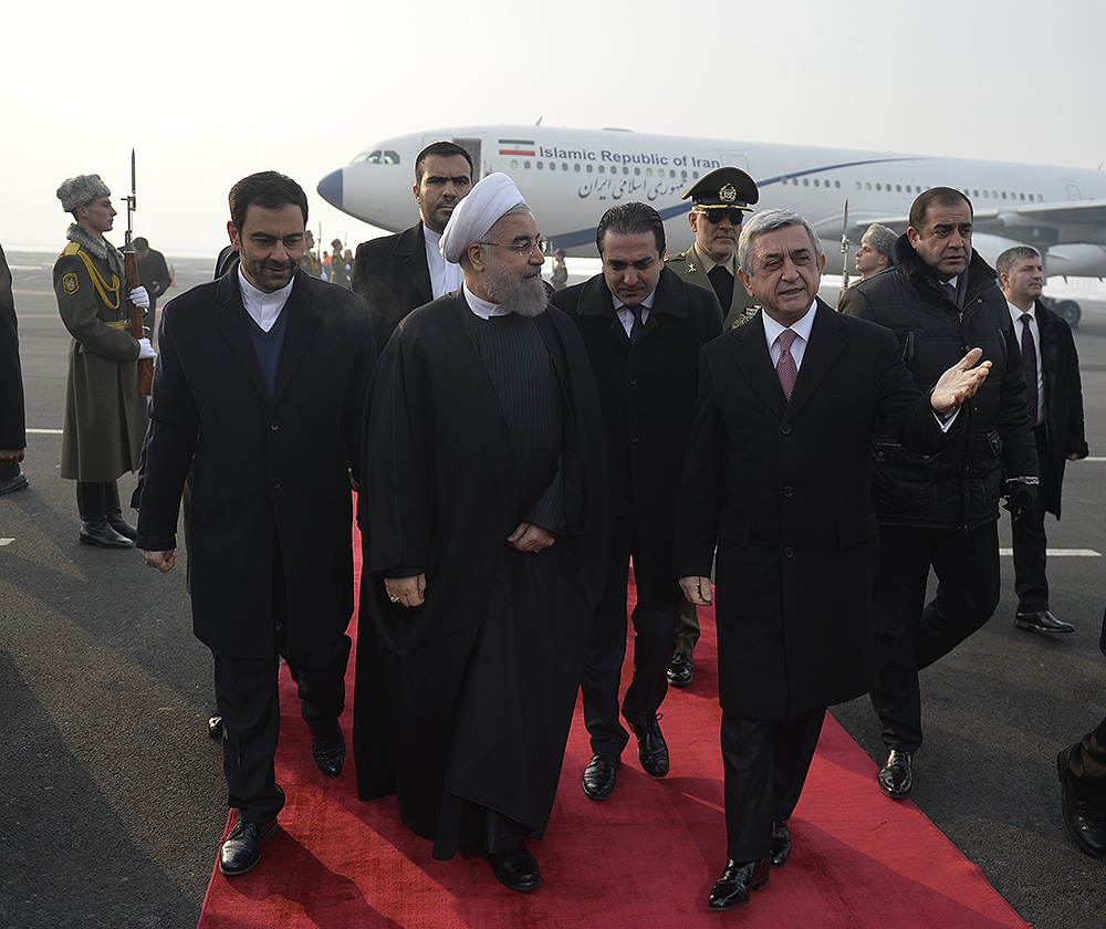Ermenistan Cumhurbaskanı Serj Sarkisyan’ın daveti üzerine bugün, 21 Aralık’ta İran İslami Cumhuriyeti’nin başkanı Hasan Ruhani Ermenistan’a geldi. İran Cumhurbaşkanı başkent Yerevan’ın Zvartnots Havalimanında Ermenistan Devlet Başkanı Serj Sarkisyan ve Başbakanı Karen Karapetyan tarafından karşılandı.