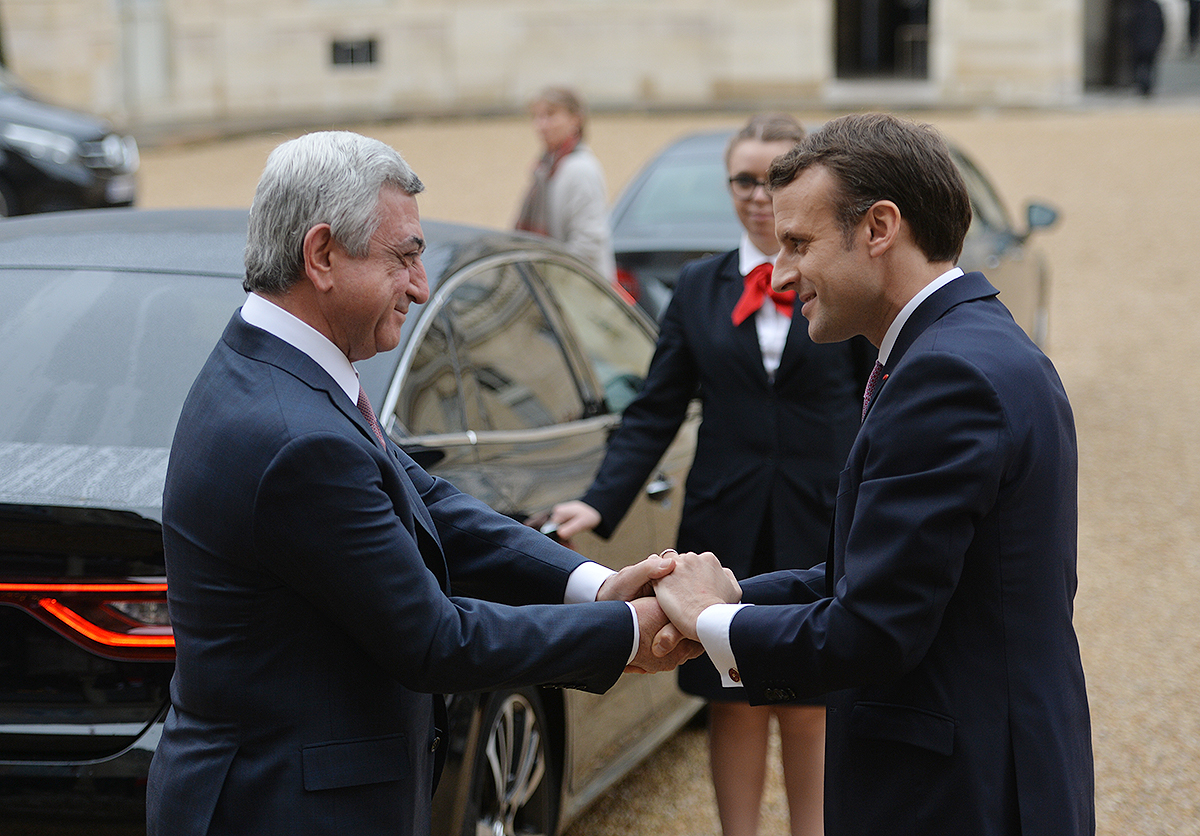 Ermenistan Cumhurbaşkanı Serj Sarkisyan çalışma ziyareti için gittiği Paris’te Fransa Cumhurbaşkanı Emmanuel Macron ile bir araya geldi.